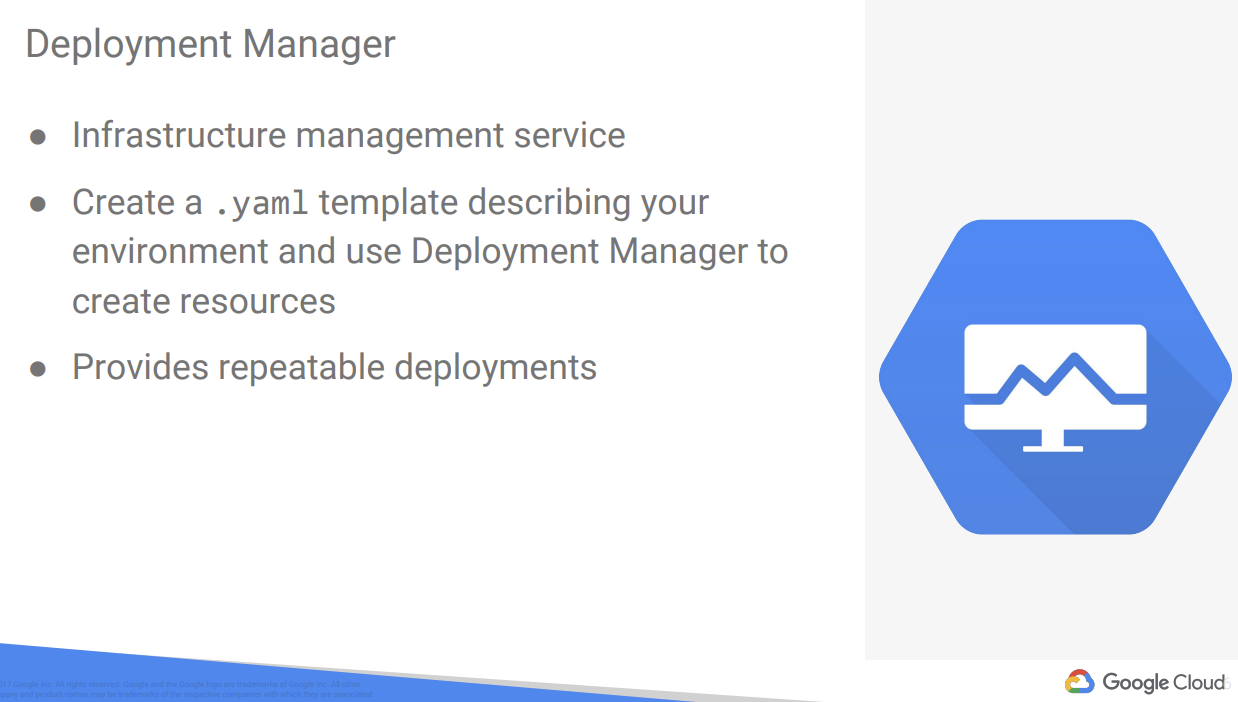 - deployment manager은 GCP 리소스를 관리하는 시스템이다.
