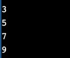 - for(int i : {2, 3, 5, 7, 9}){ std::cout << i << std::endl}