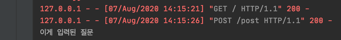 여기서 질문입력을 받으면 서버에 출력을 먼저 해보겠다.