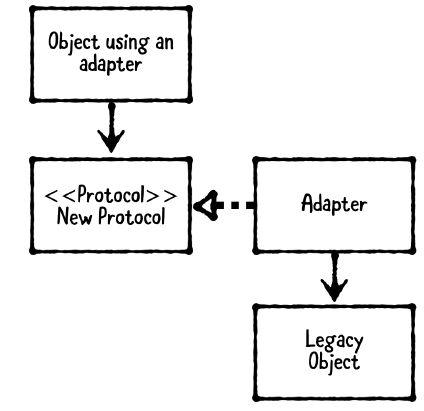 - Adapter: 프로토콜을 준수하면서 legacy object 와 상호작용 하기 위해 만들어진 객체