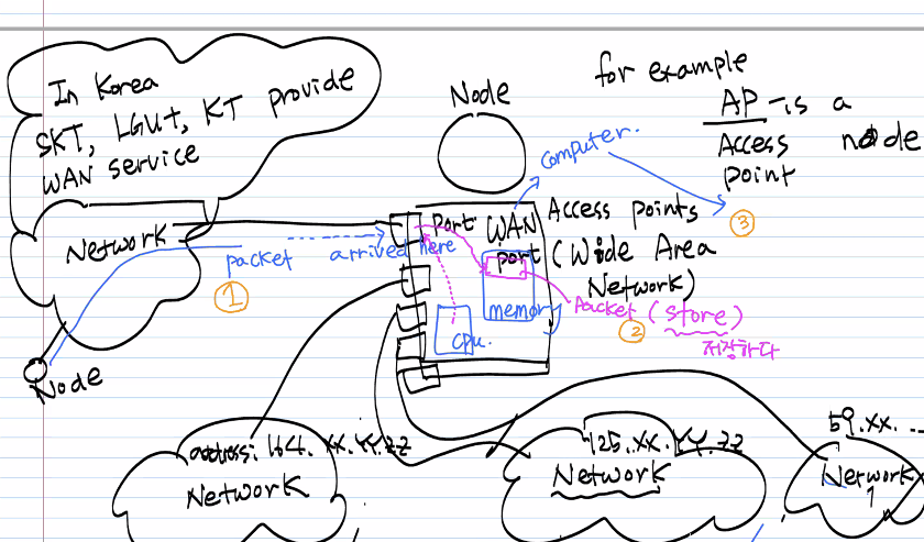 - WAN node 에서 packet 이 AP 로 들어온다.