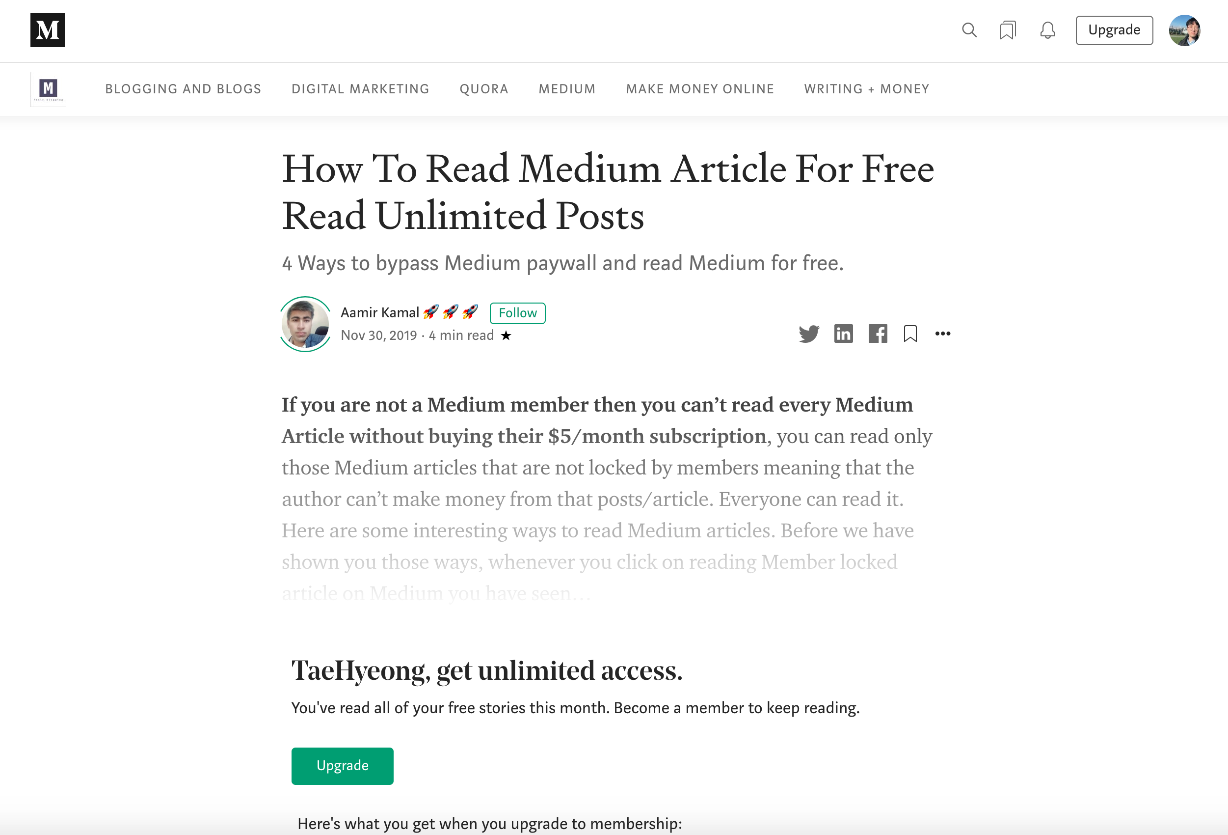 How to read Medium.com articles for free by bypassing their subscription/Paywall.