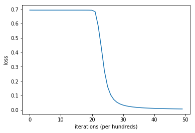 loss = 1./X.shape[1] * np.sum(-1 * (Y * np.log(Y_hat) + (1-Y) * np.log(1-Y_hat)))