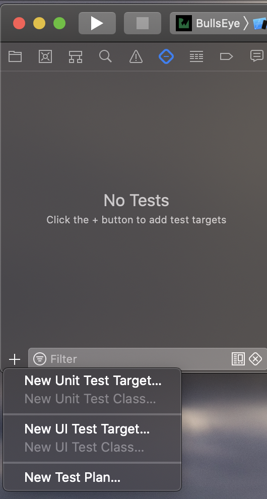먼저 Test navigator 로 들어가 New Unit Test target을 만들어 준다.