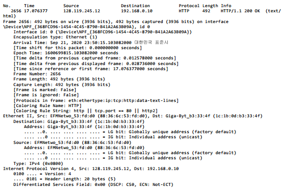 - packet-header detail window: packet-listing 에서 선택된 패킷에 대한 상세 정보를 제공한다.