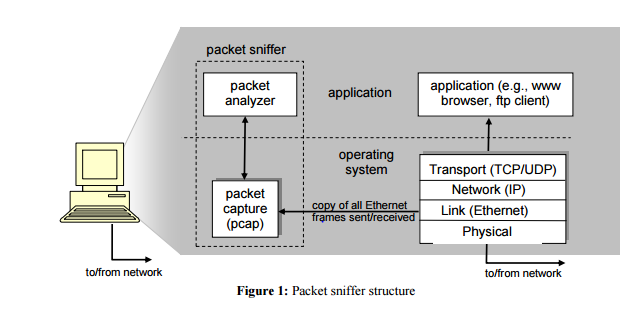 패킷 스니퍼의 구조는 크게 두가지로 나눠진다. Packet capture library와 packet analyzer 이다.