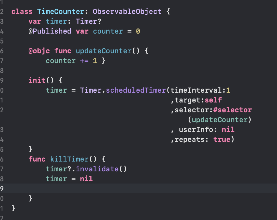 @ObservedObject var timer = TimeCounter()