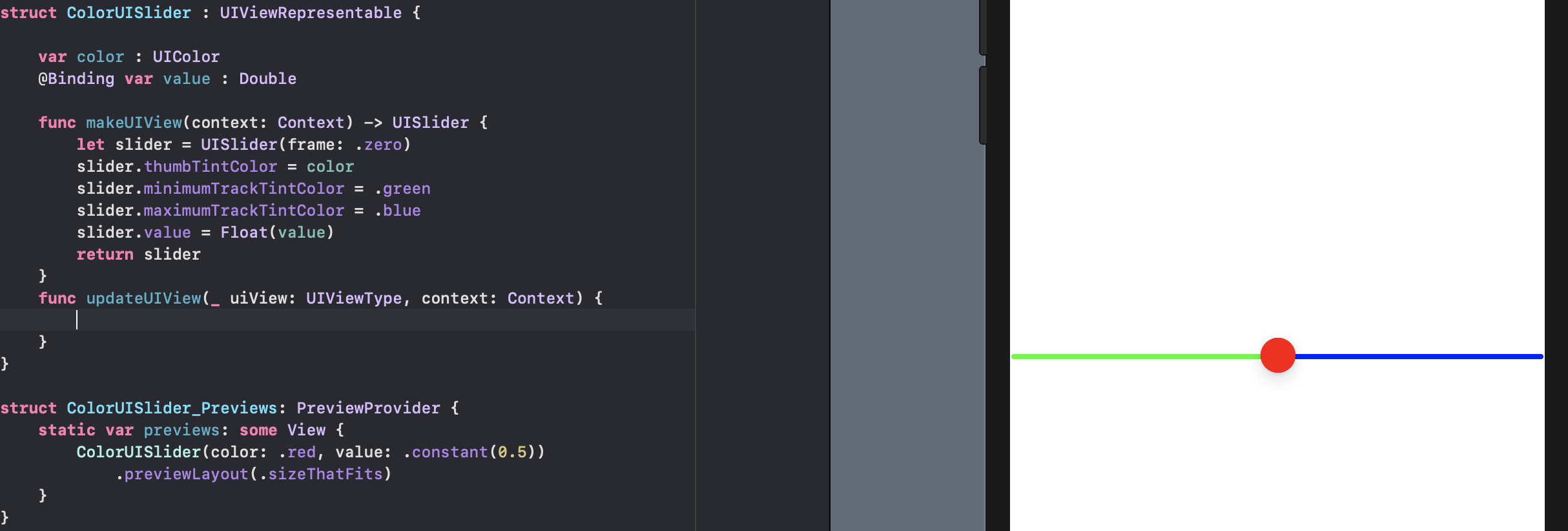 어떤 상황이냐면 UIKit의 slider는 thumbTintColor 프로퍼티가 있지만 SwiftUI Slider는 해당 프로퍼티가 없다. 그래서 UISlider를 통해 그 프로퍼티에 접근하려 한다.
