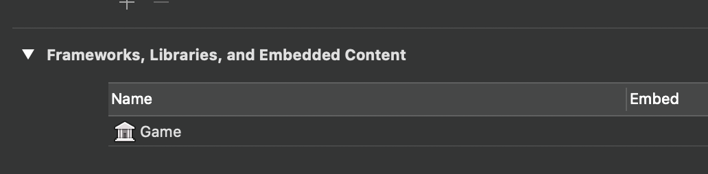 그래서 라이브러리를 앱에 link 하려면 iOS app target 의 Frameworks 에서 Librareis and Embedded Content 에 + 로 추가해줘야 한다.