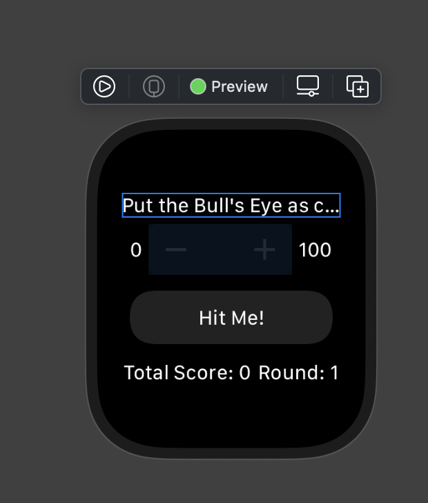 BullsEyeGame.swift를 Game 패키지로 만들고 모듈을 필요한 ContentView 에 import 해서 잘 동작하는 걸 볼 수 있다.