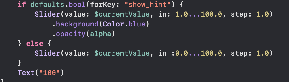 이제 해당 default를 사용할 ContentView 에 가져와서 설정값에 따라 slider 모양이 바뀌게 해준다.