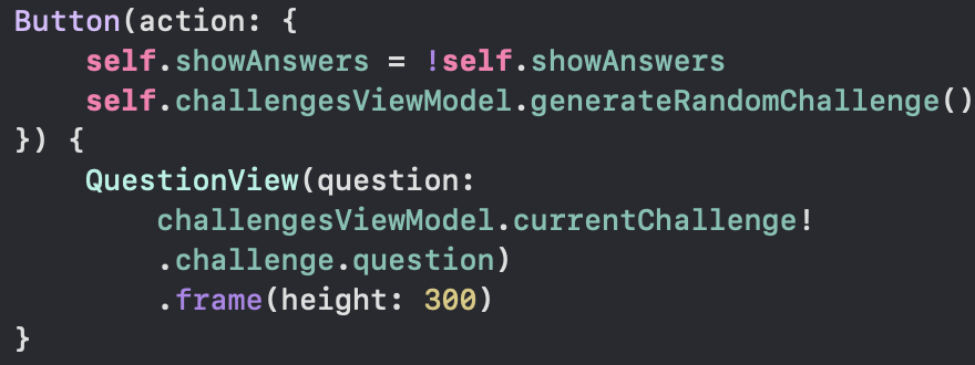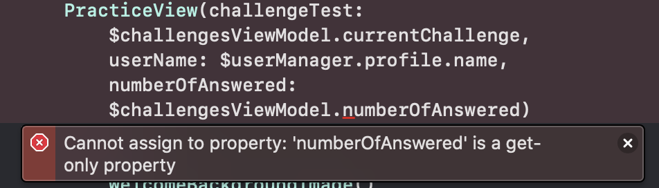 이제 ChallengesViewModel 를 사용하는 모든 곳에 수정해야 한다. (WelcomeView, ChoicesView)