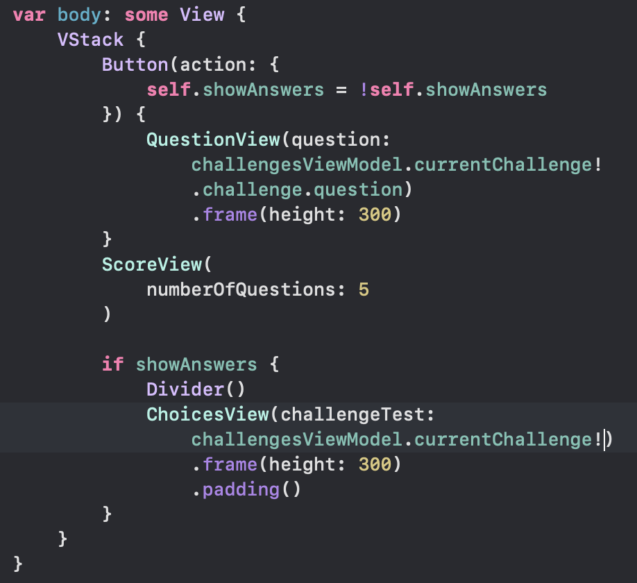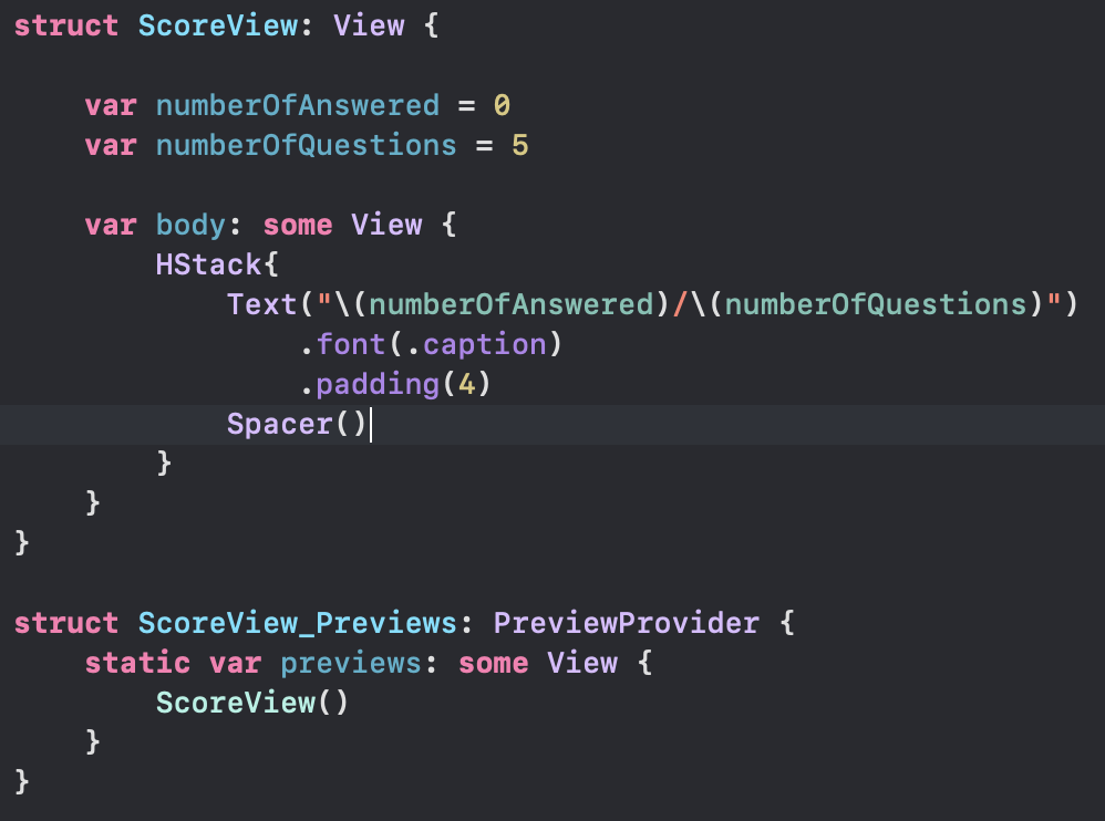 - HStack으로 QuestionView 와 ChoicesView 를 수평으로 표시한다.