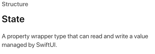 SwiftUI에 의해 관리되는 value 를 읽고 쓸 수 있는 property wrapper type이라고 한다.