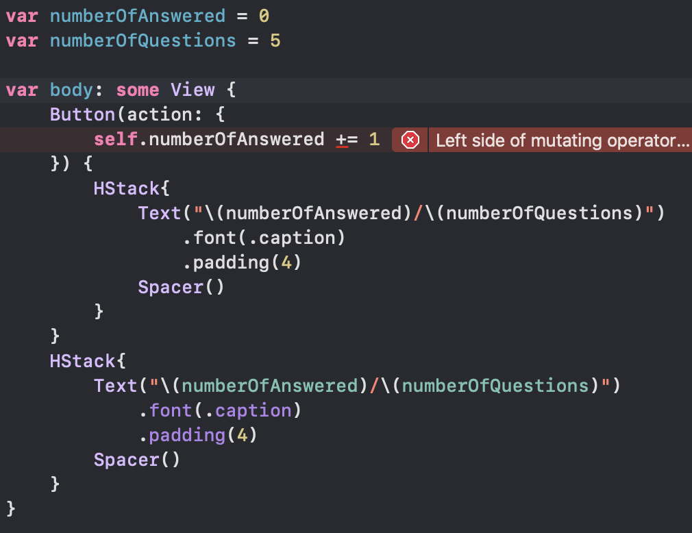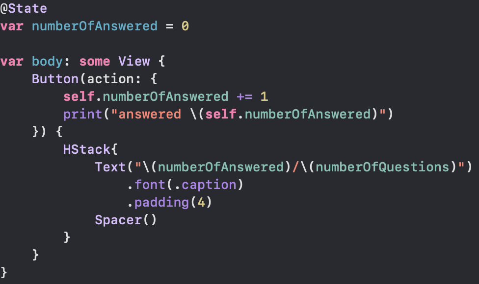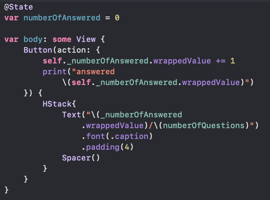 _numberOfAnsered 를 @State 를 사용해 바꿔보자
