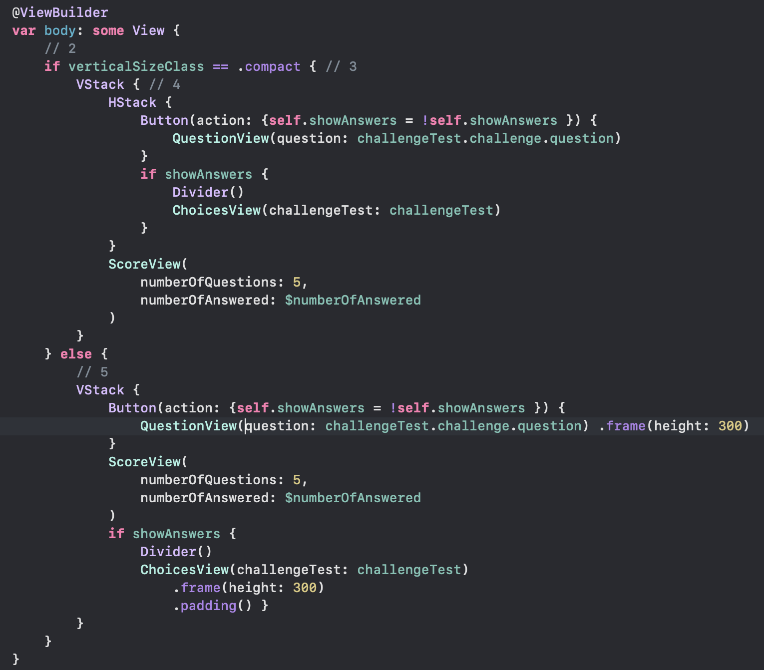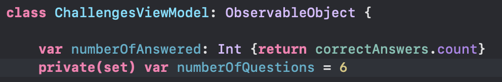 이제 ChallengesViewModel 에 numberOfQuestions를 추가한다. (read-only)