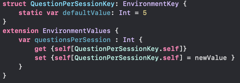 - EnvironmentValues extension 에 새롭게 computed property 를 추가하여 subscript operater 를 사용해 값을 읽고 쓸 수 있게 만든다.