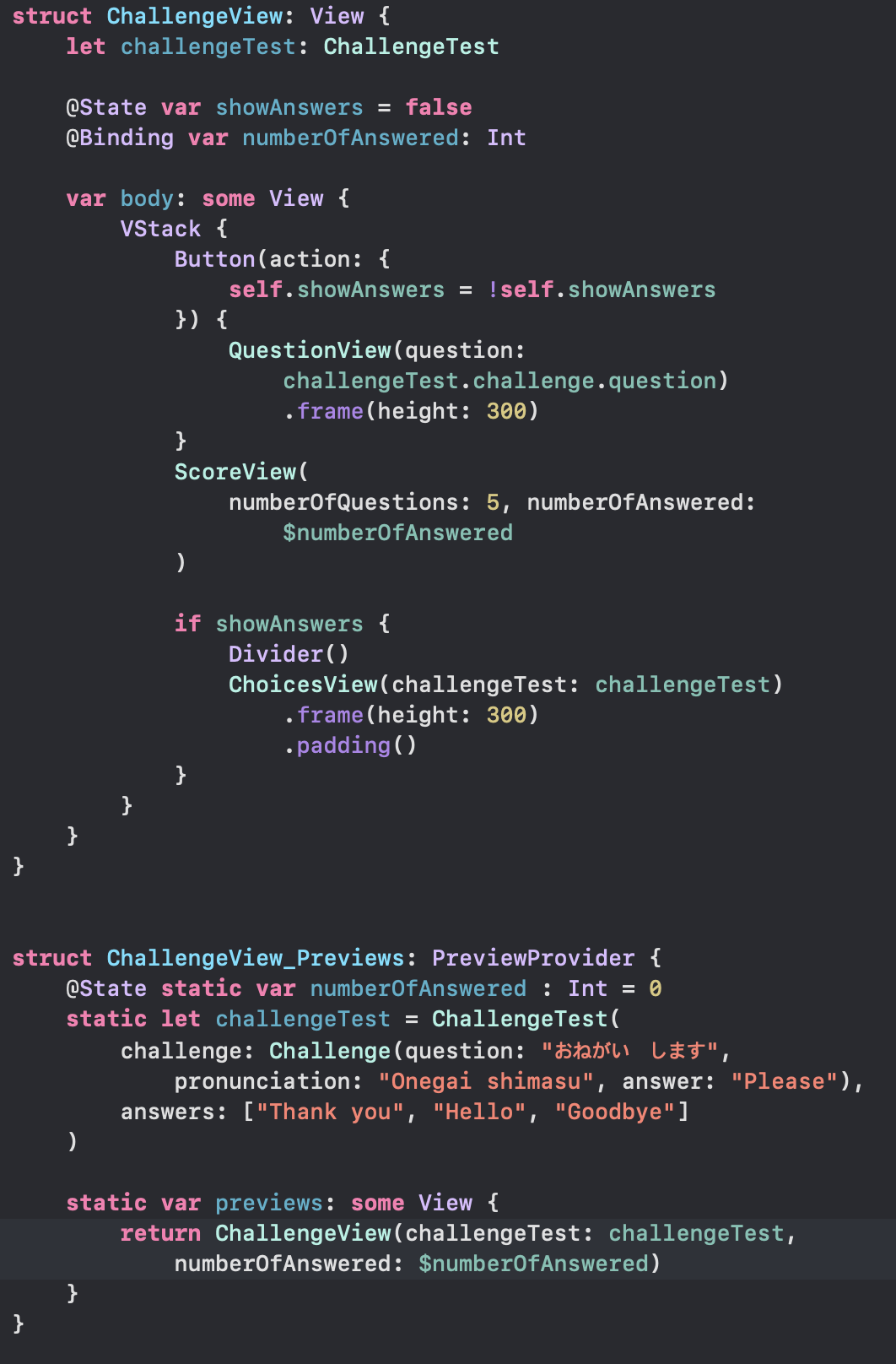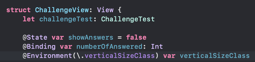 이제 프로퍼티는 다 만들었고 ChallengeView 에서 써보자