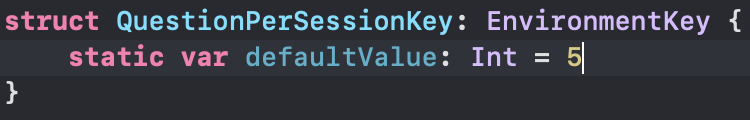 - property key로 사용할 구조체 타입을 만들어 EnvironmentKey 를 준수하게 한다.
