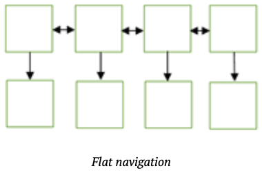 flat navigation 구조는 카테고리별로 나눠진 컨텐츠에 따라 화면을 이동할 때 적합하다.