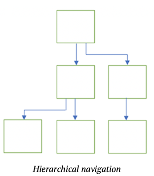 Hierarchical navigation은 사용자에게 top 에서는 적은 선택권을 주고 아래로 깊은 구조를 가진다.