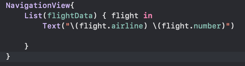 FlightInformation class 에는 id 라는 프로퍼티가 있기때문에 단순히 SwiftUI 에게 알려만 주면 된다.