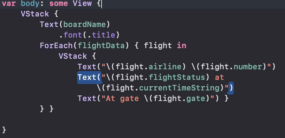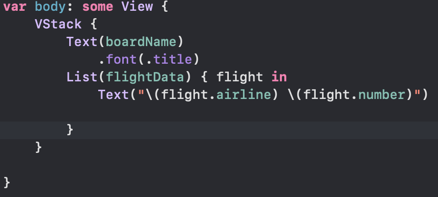 FlightBoard.swift 를 열어 body를 수정한다.
