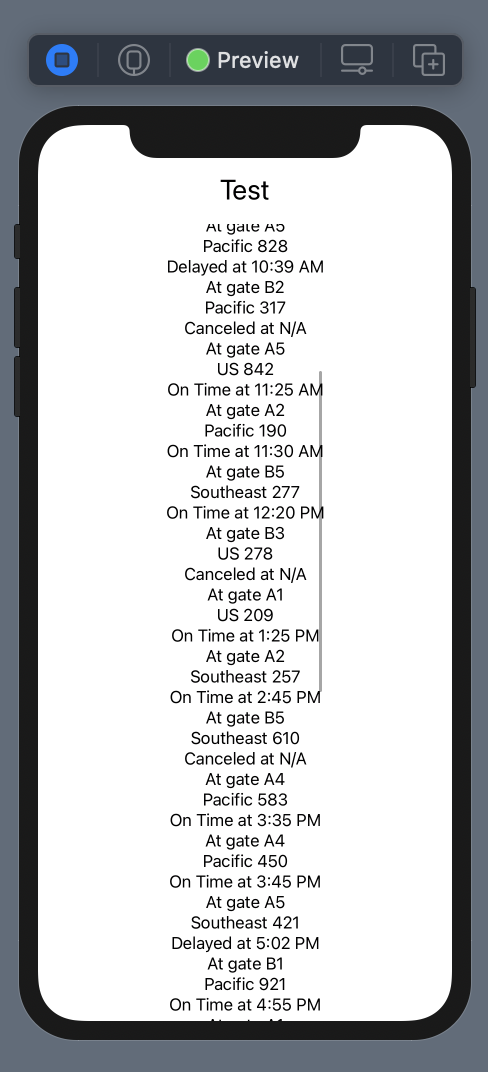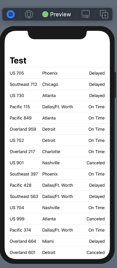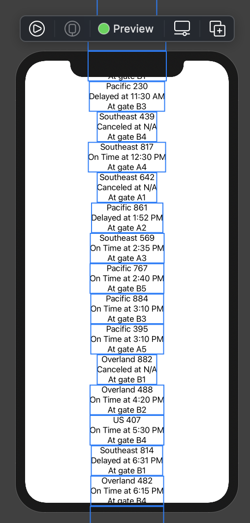 그리고 FlightBoard 에서 Text 대신 방금 만든 FlightRow view 로 바꿔준다.