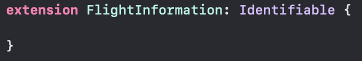 FlightInformation.swift 에서 FlightInformation 이 Identifiable 을 준수하도록 한다.