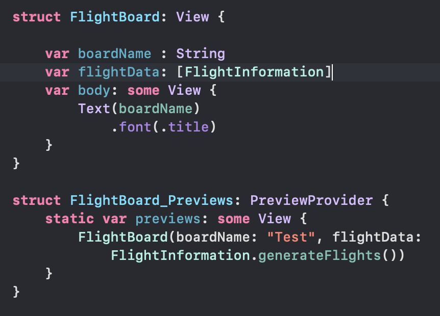 FlightBoard.swift를 열어보면 기본 뼈대만 잡혀 있다.