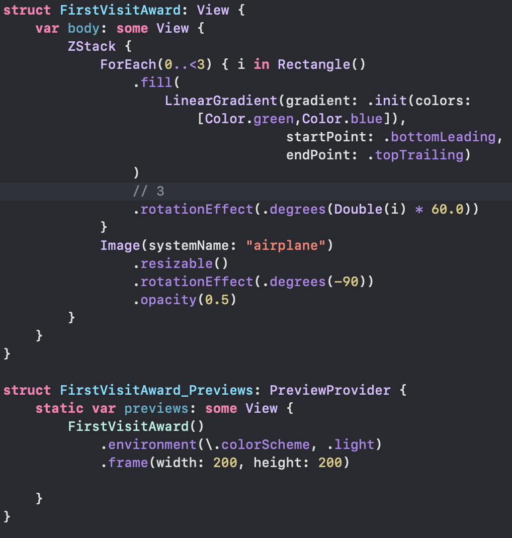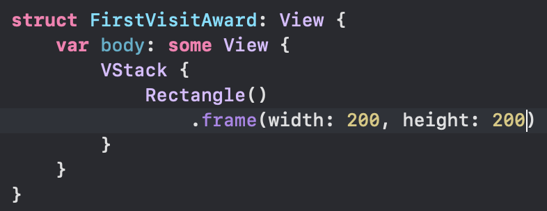 먼저 사각형을 추가하기 위해 FirstVisitAward.swift 에서 기본 Text를 지우고 Rectagle() 로 바꾼다.