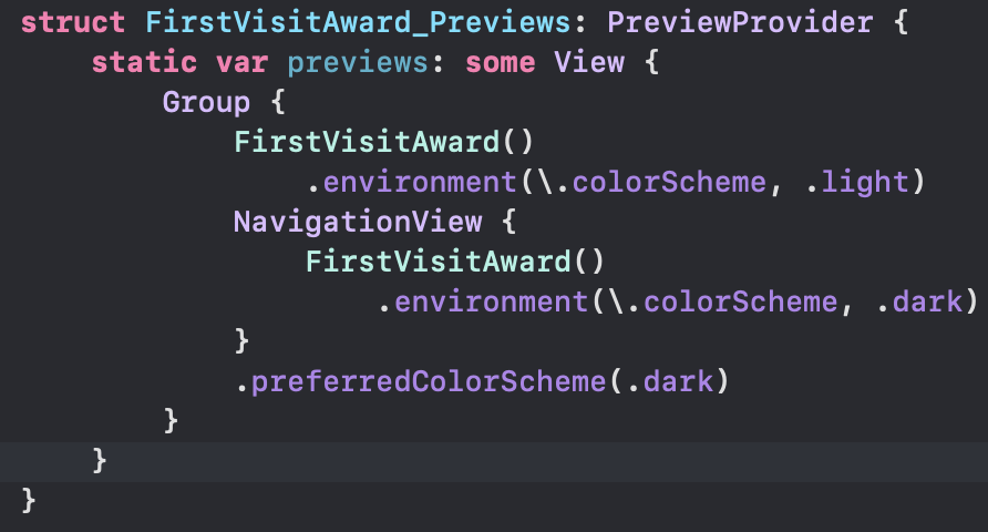 Xcode 11.4 에서 enviroment 를 바꿔도 background 가 바뀌지 않는 버그가 있어서 preview 를 NavigationView 로 wrap 해서 확인한다.