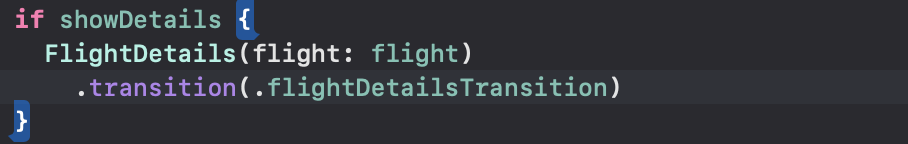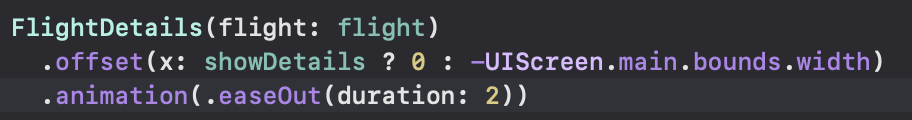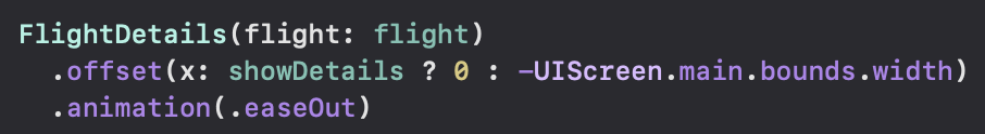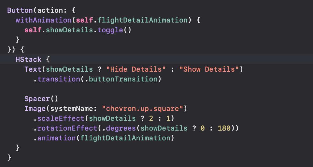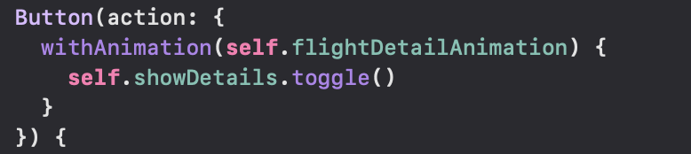 Image 와 FlightDetails 에 animation modifier를 없애고 Button action 내에