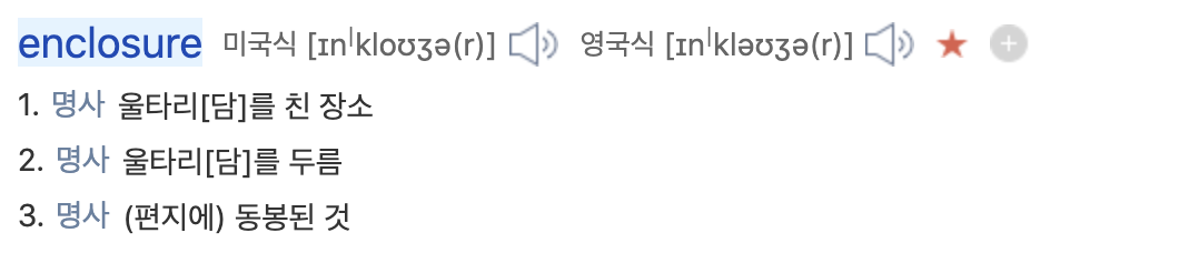 enclosure 는 닫힌, 둘러싸인 enclose 의 느낌이다.