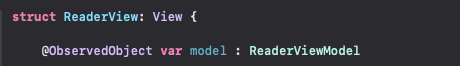 - 이제 ReaderViewModel 이 ObservableObject를 준수하니 ReaderView 에 데이터 모델을 바인딩 해주자
