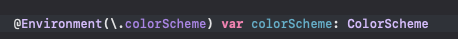 이제 이 프로퍼티는 view 의 state 가 되었기 떄문에 다크모드, 라이트모드 변경시 SwiftUI 는 지금 view 를 re-rendering 할 것 이다.