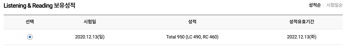 중학교 3학년때 쳤던 토익인데 유효기간이 다되어