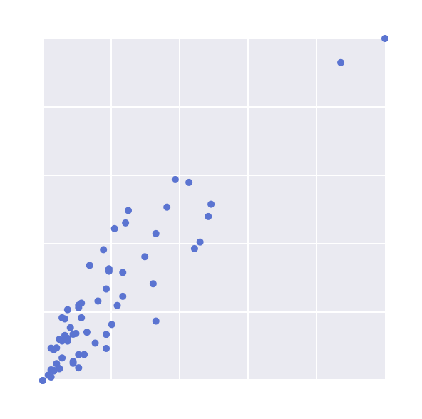 직관적으로 y=ax+b 형태로 증가하는걸 볼 수 있다 --> 단순 선형 회귀(LinearRegression) 알고리즘 사용해 보기로 판단