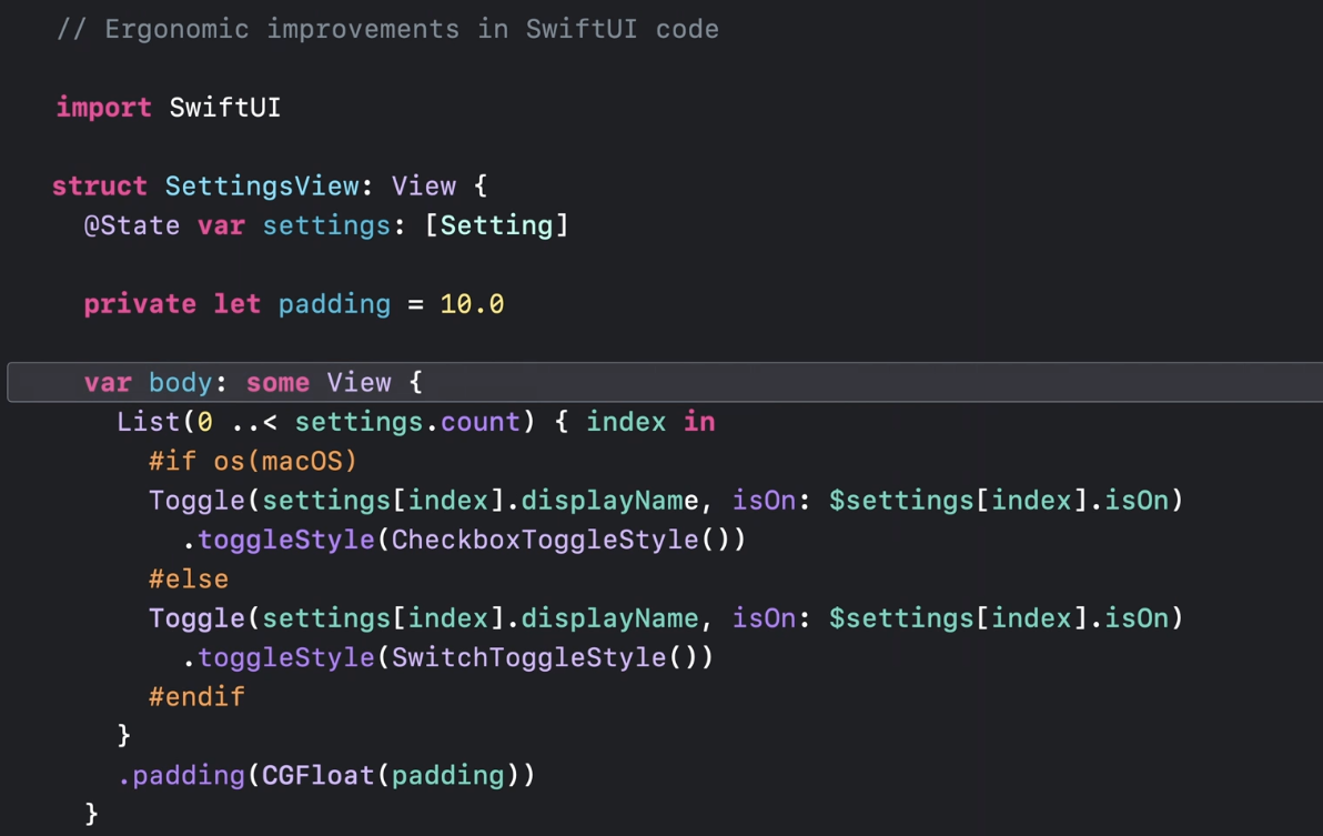 Swift Ergonomic imporvements