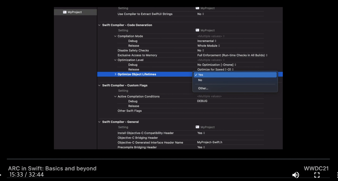 Optimize Object lifetimes 을 통해 좀더 공격적인 메모리 관리가 가능하다.