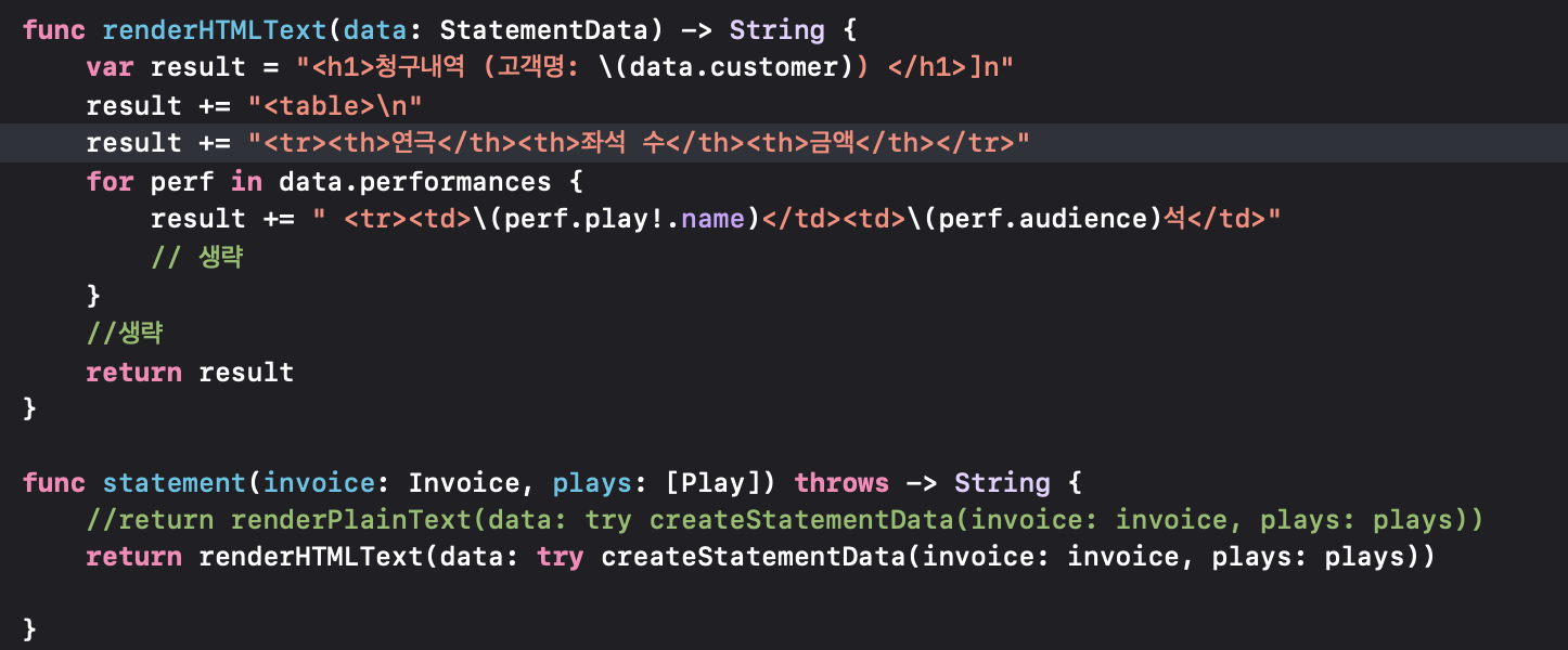 var result = "<h1>청구내역 (고객명: \(data.customer)) </h1>]n"