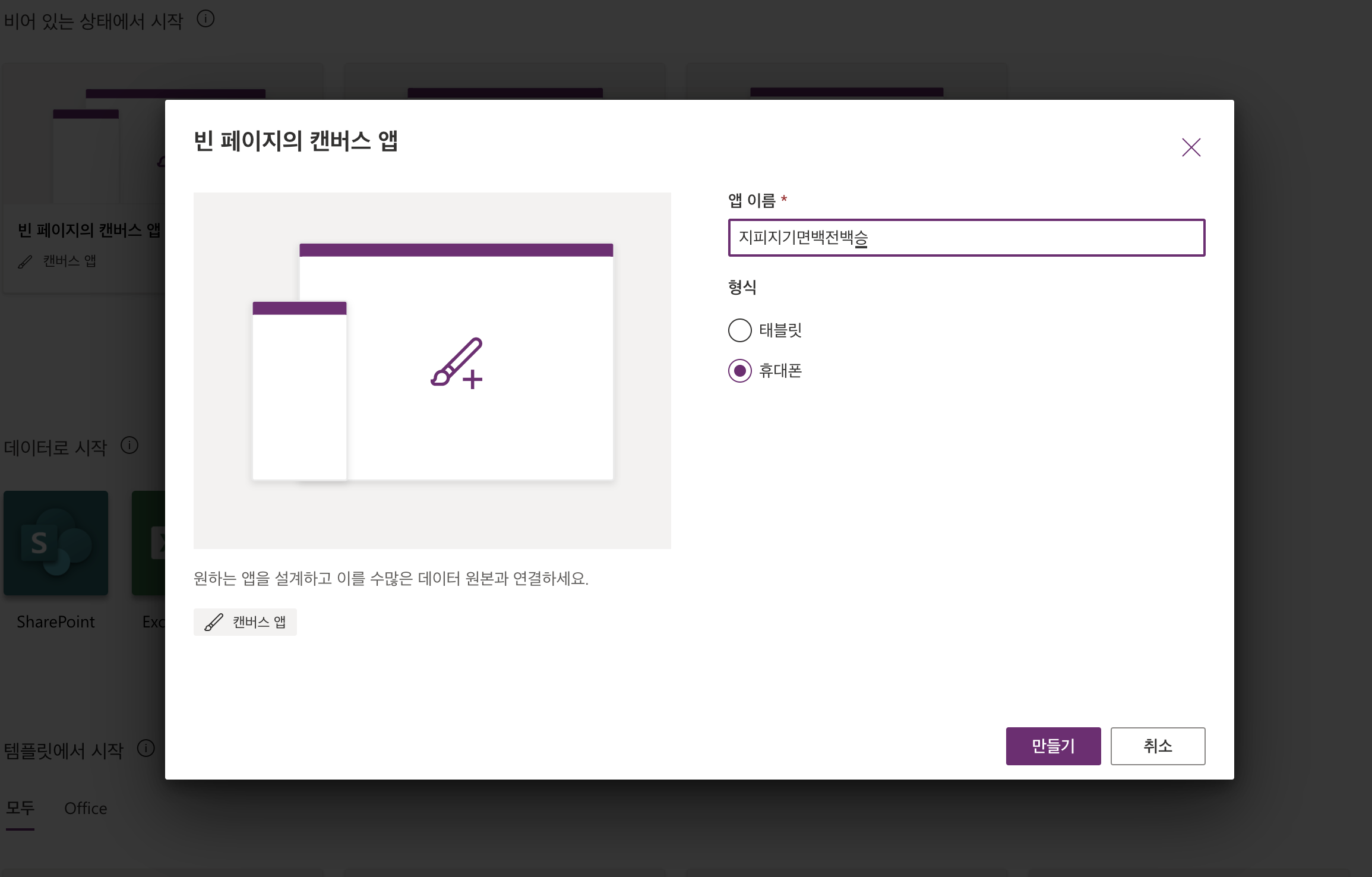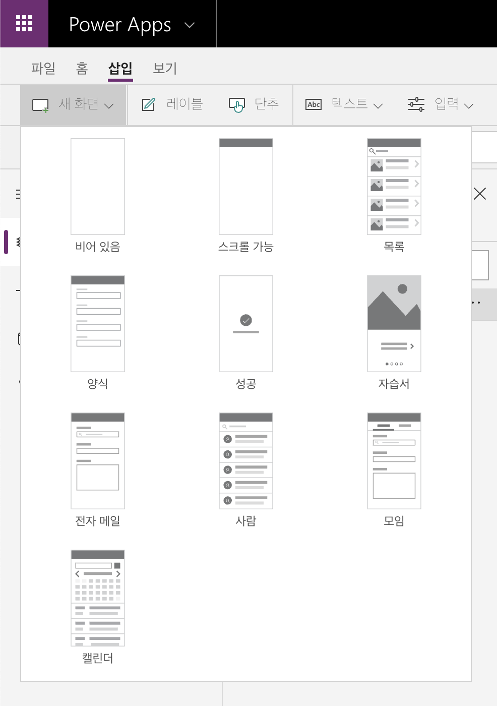 사실 템플릿을 사용한다는 것은 어느정도의 커스터마이즈에 제약이 있기 때문에 Power App이 얼만큼의 사용자화를 지원하는지 알기 위해