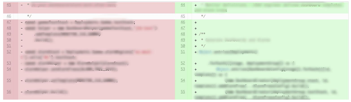 어떤 코드가 추가된 기능관련 부분인지 diff로 파악할 수 없다.