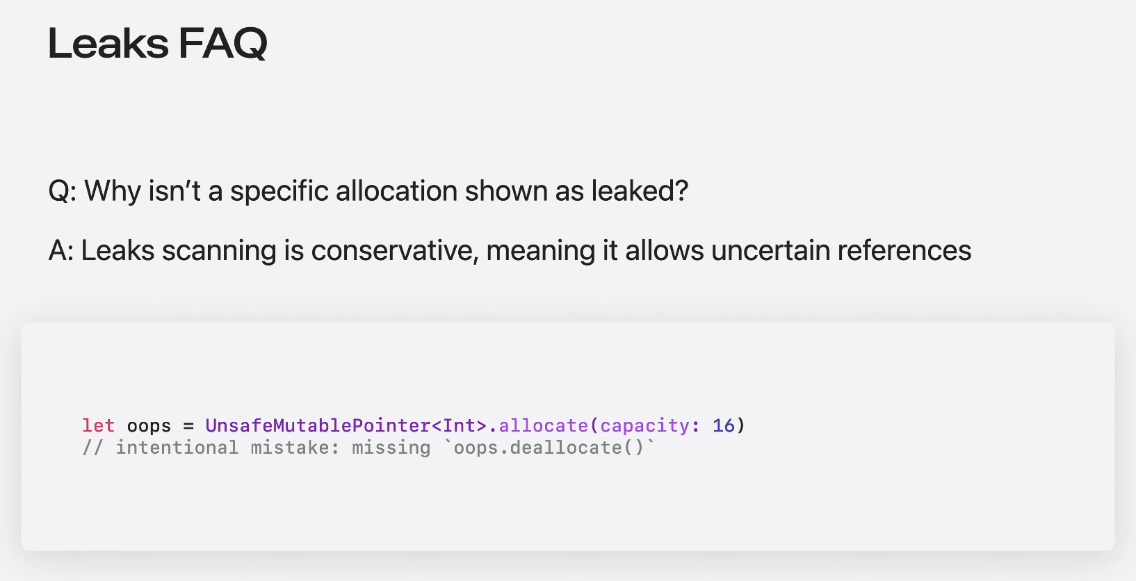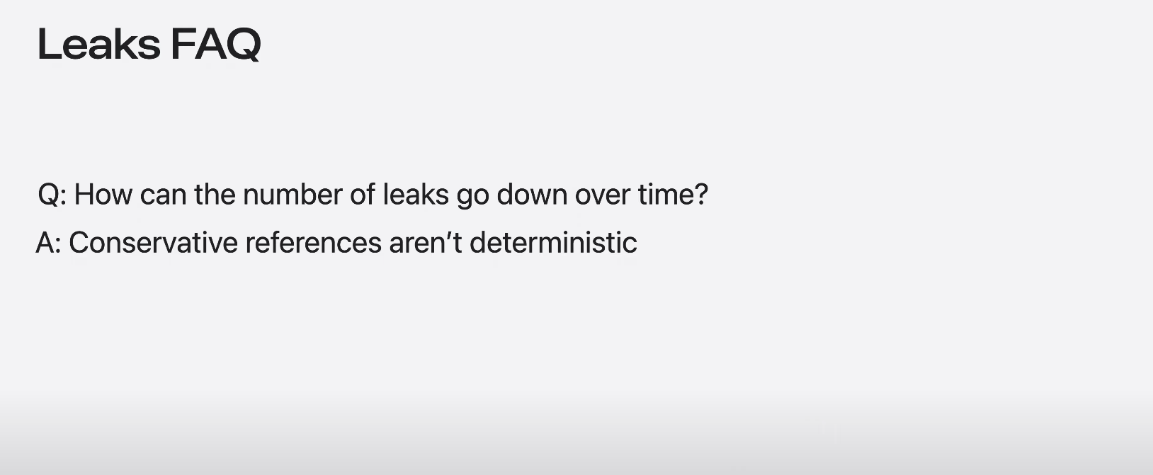 따라서 보수적인 참조로 인해 실제 leak을 놓칠 수 있다