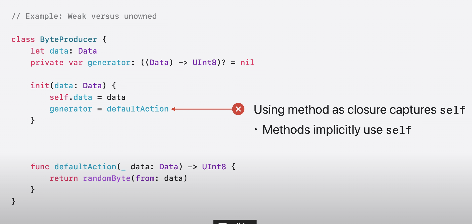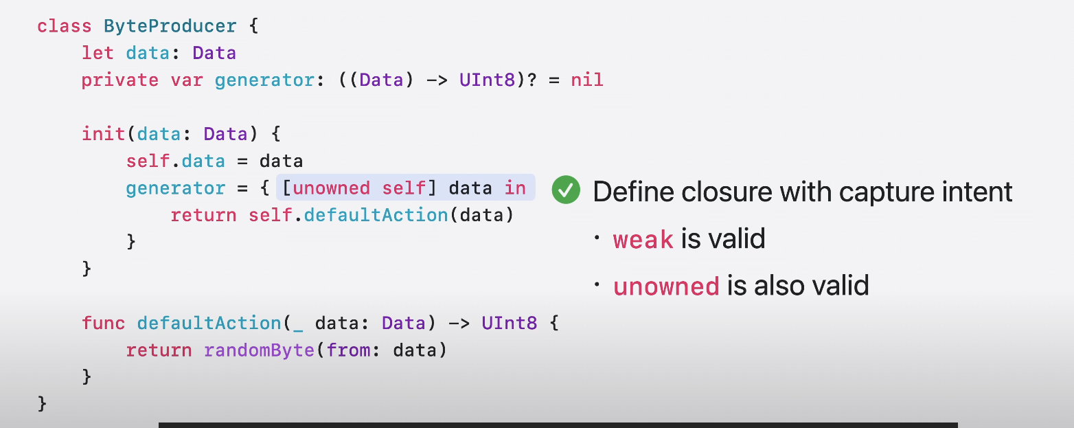 unowned가 가능한 이유는 generator closure가 참조 대상인 ByteProducer 인스턴스와 수명이 동일하기 떄문이다