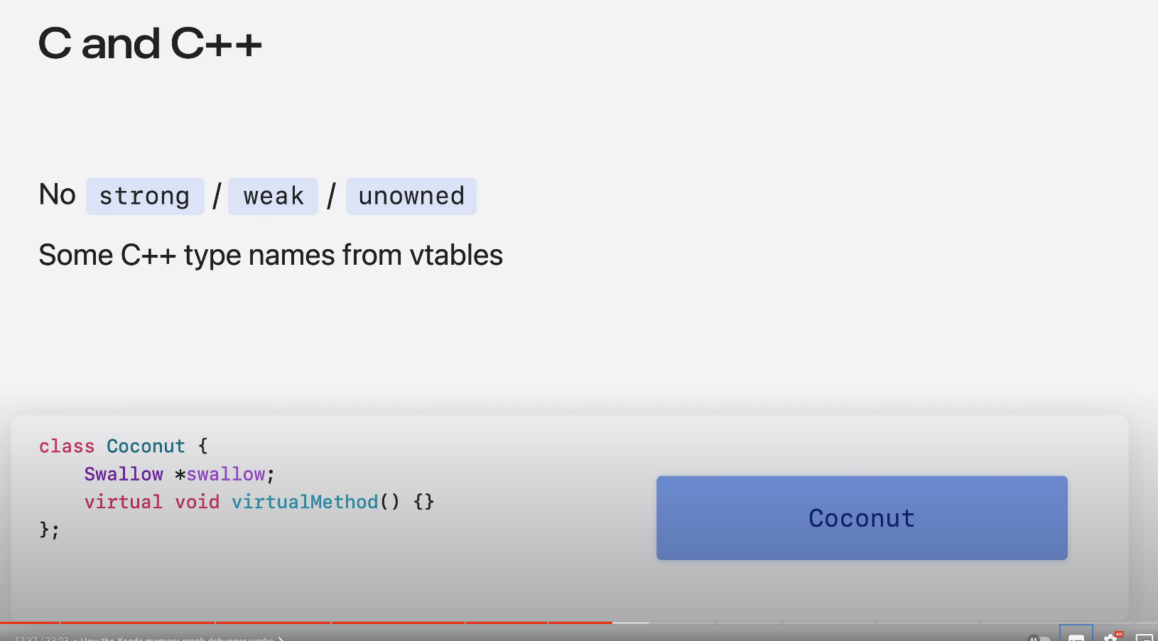 코코넛이 제비를 참조하도록 하려면 약한 참조를 사용해야 하는데 여기에는 오버헤드가 발생한다