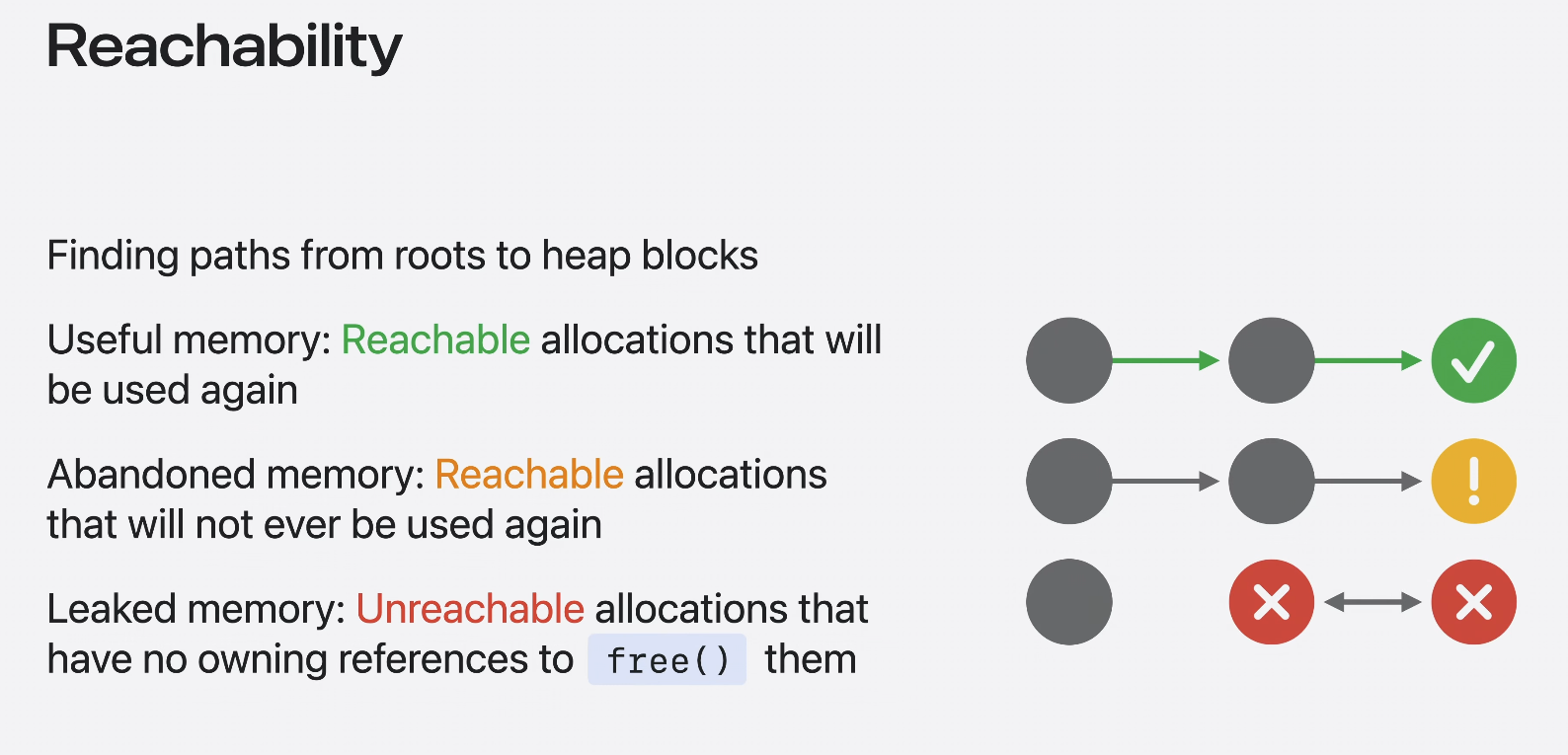 누수된 메모리를 이해하고 수정하려면 먼저 연결 가능성(Reachability)에 대해서 알아야 한다.