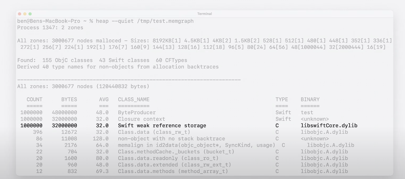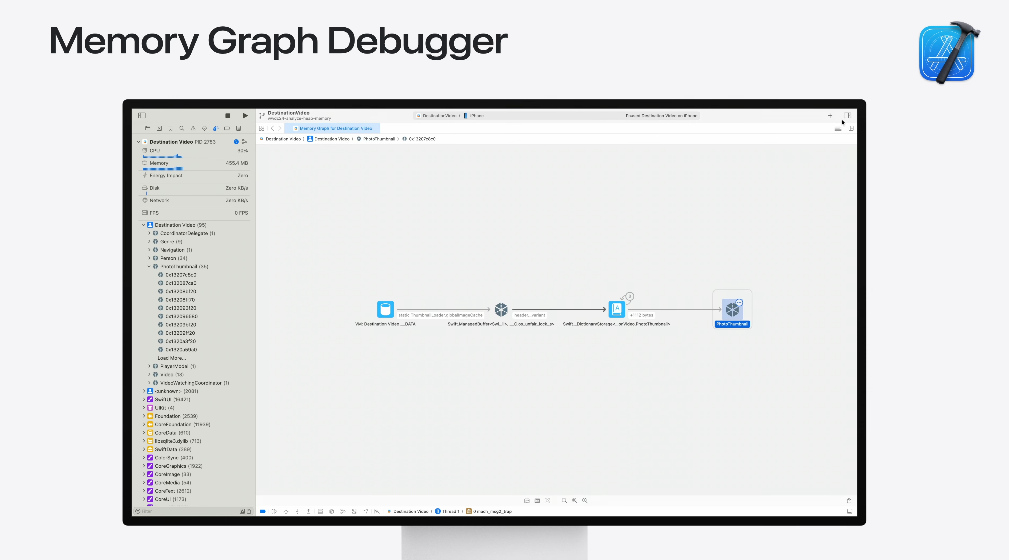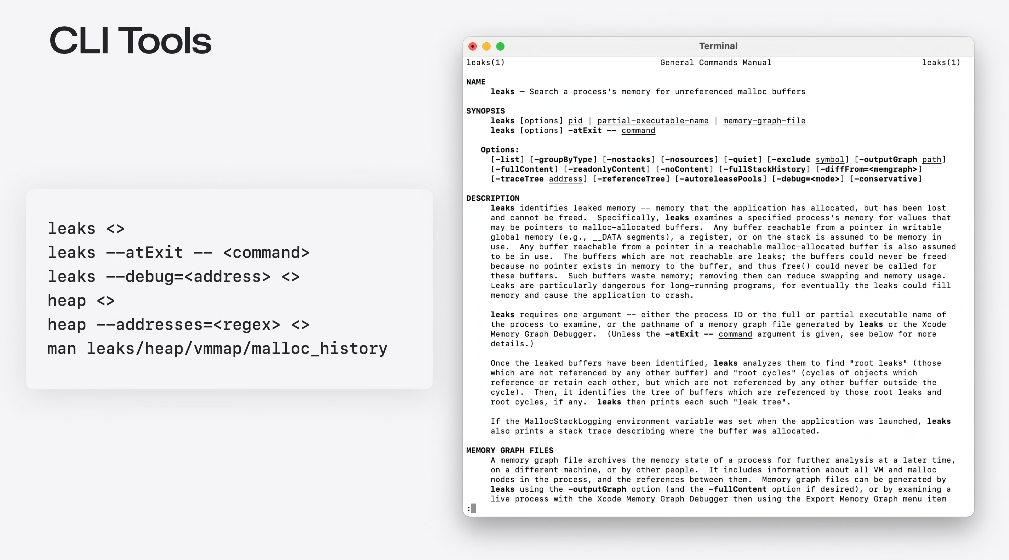 Xcode는 메모리 분석 CLI 툴을 통해 맥이나 시뮬레이터의 프로세스를 직접 분석하거나