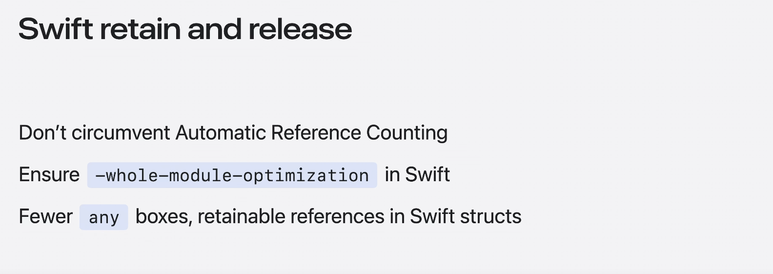 weak 나 unowned외에도 automatic retain and release call이 프로파일링 핫스팟으로 표시되는 경우가 있다