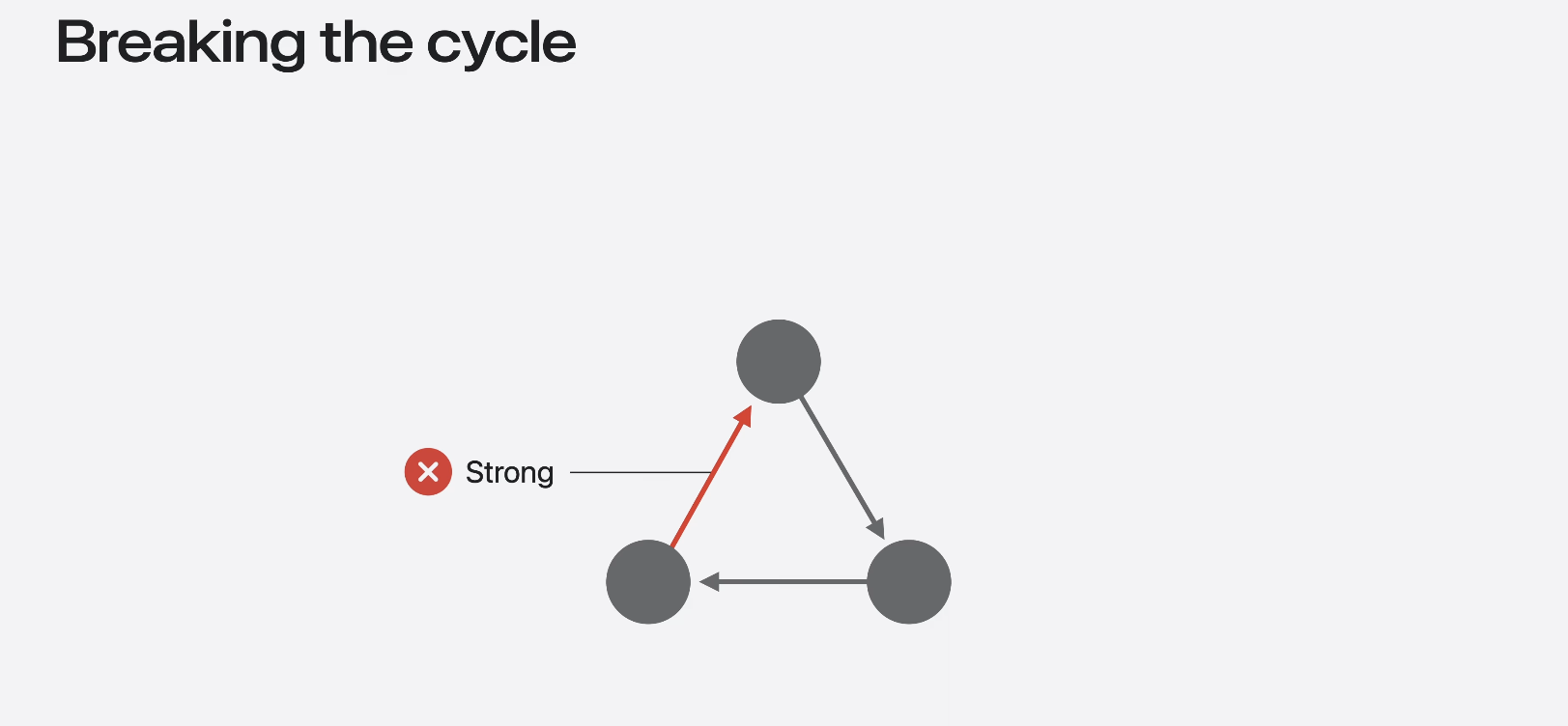대부분 leak에 대한 목표는 한 주기에서 참조를 찾아 수정하는 것이다